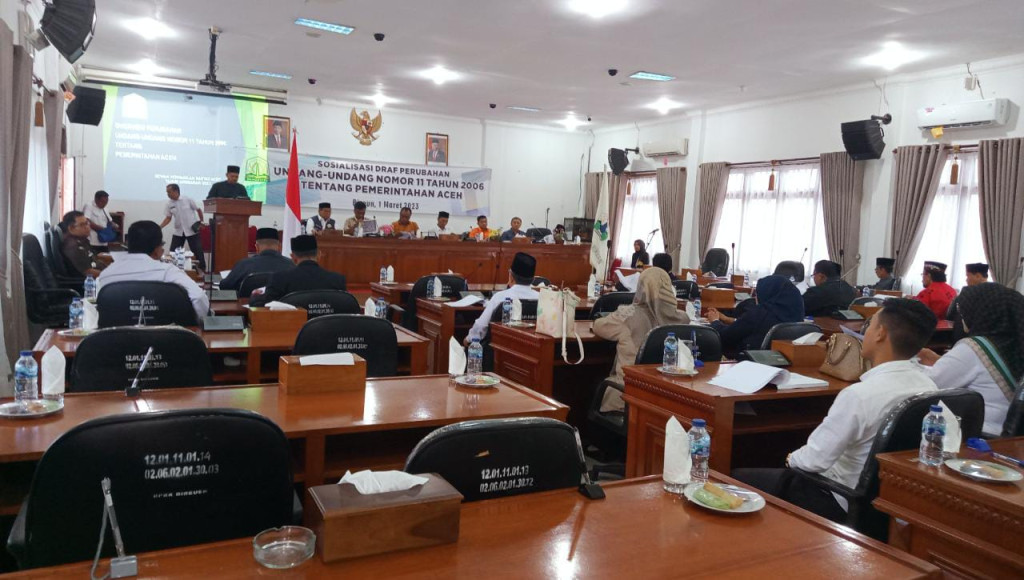 Bireuen-Dewan Perwakilan Rakyat Aceh (DPRA) mensosialisasikan draf tentang Refisi UU No 11 Tahun 2006 Tentang UUPA yang mengatur tentang kekhususan Aceh, Wakil Ketua DPR Aceh Safaruddin di Kantor Sekretariat DPRK Bireuen mengatakan seluruh rumusan aspirasi masyarakat yang disampaikan dalam sosialisasi draf perubahan UUPA yang digelar di daerah akan dirampungkan di DPR Aceh.(Rabu,1/3/20223)